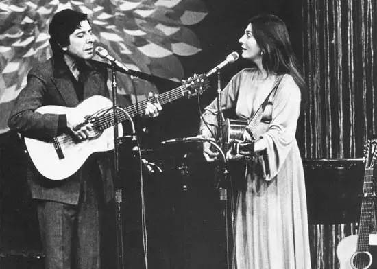 这是两人在民谣音乐节上的甜蜜合影。科恩标志性的温柔眼神,让受伤的米雪儿一时如沐春风。为了弥补智商上的欠费,科恩为米雪儿姑娘恶补文学,从洛尔迦的诗到中国的玄学经典《易经》,没想到竟然把米雪儿也培养成了美国歌坛少有的创作型民谣女王,苹果CEO乔布斯终生的偶像,美国民谣摇滚的重量级代表。